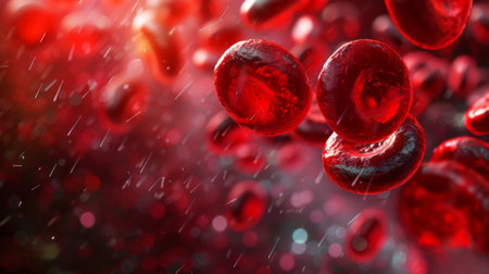 Stunning and depicting detailedion of red blood cells gracefully flowing through the bloodstream, showing their intricate structure and dynamic motion