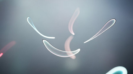 A close-up photo capturing a group of red blood cells suspended and floating mid-air, An image representing the sickle-shaped blood cells found in sickle cell anemia, AI Generated