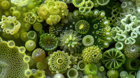 Vibrant Microscopic Algae Detailed Structure Colorful Aquatic Lifeform Art Teal Pink Blue Ocean