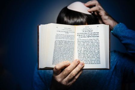 Jerusalem Israel May 16, 2018 Closeup of a religious people reading the torah book in Jerusalem