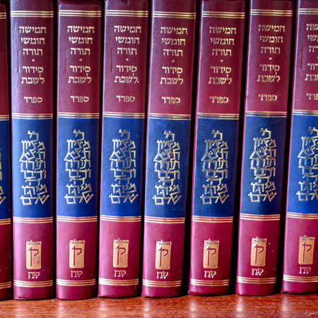 1 August 2025 Jerusalem Israel Religious Jewish texts are opened beside prayer shawl, moment of reflection faith in quiet environment. Hebrew Tanakh prayer holy book