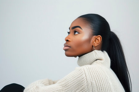 A confident young woman in elegant clothing, standing indoors generated by artificial intelligence