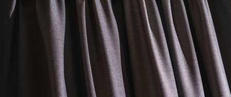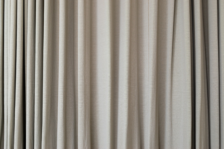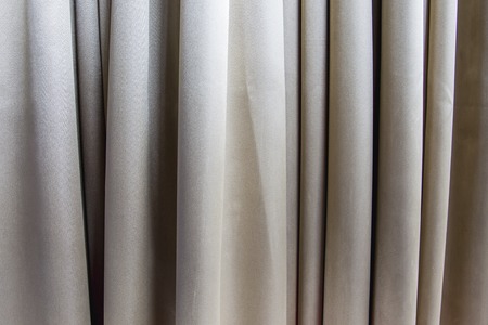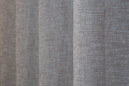 background gray beige linen curtain close up, side view