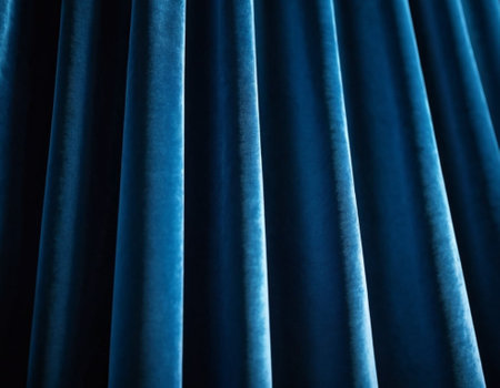 Deep shadows and smooth texture of navy blue suede fabric create a striking visual appeal