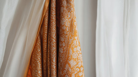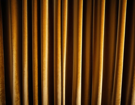 Closeup The golden folds of curtains