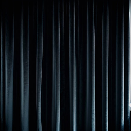 Curtain with soft smooth flowing folds. Deep black color and luxurious texture create a dramatic and elegant atmosphere. Decoration and interior design. Expensive curtain made of rich fabric. AI.