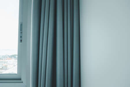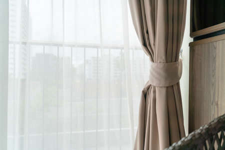 Close up of curtains and glass window, Curtain interior decoration in living room