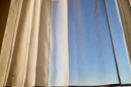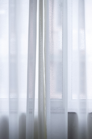 White curtain on the window in the morning light. Abstract background.