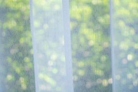 Close up curtain window with green garden background