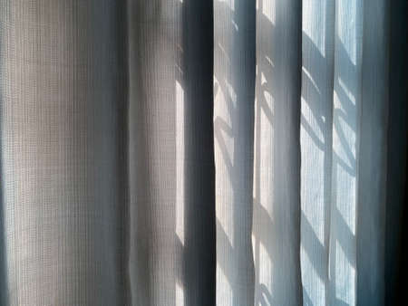 Curtain with light and shadow on the wall in the room.