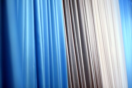 Blue curtains decoration in room, close up