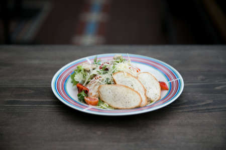 Chicken Salad. Chicken Caesar Salad. Caesar Salad with grilled chicken on plate