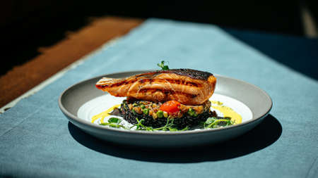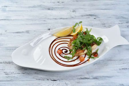 Beautiful and tasty food on a plate, exquisite dish, creative restaurant meal concept, selective focus