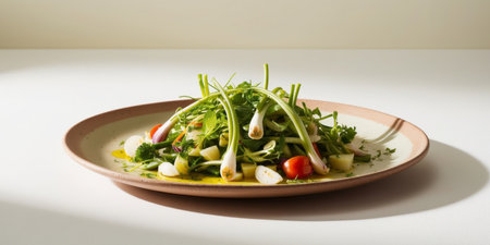 AI Generated. Fresh vegetable salad with ramps or wild garlic - Wholesome spring dish