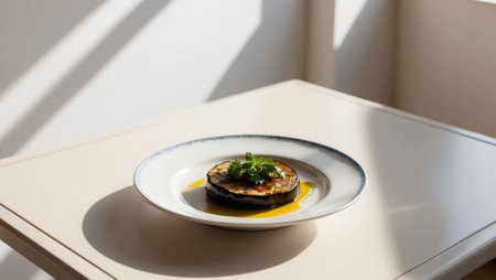 AI Generated. Restaurant serving marinated eggplant as a delicious appetizer