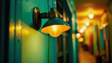Vintage lamp shines bright on turquoise wall for warm ambience lighting