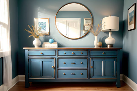 Blue wall commode decor in living