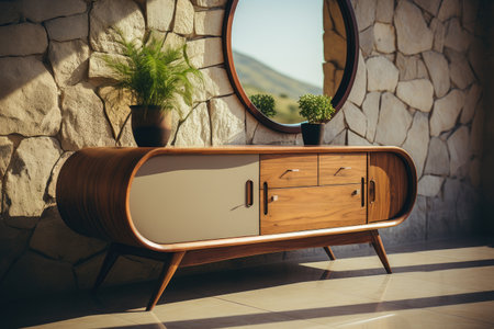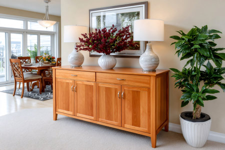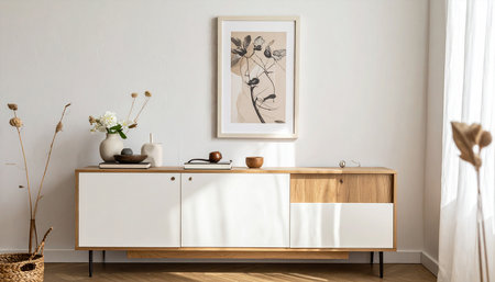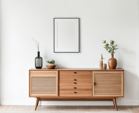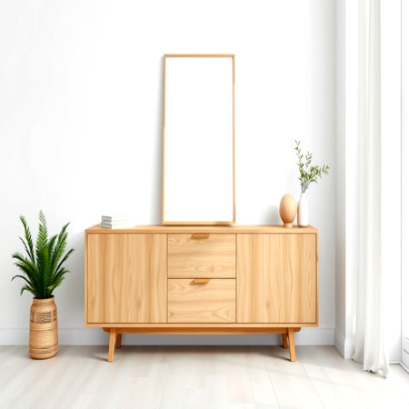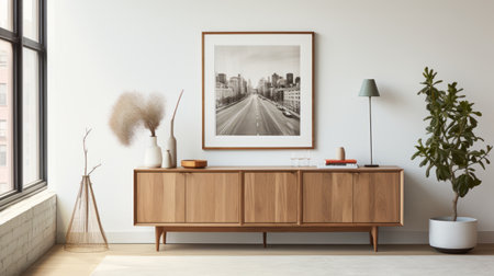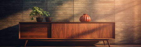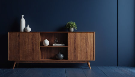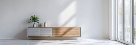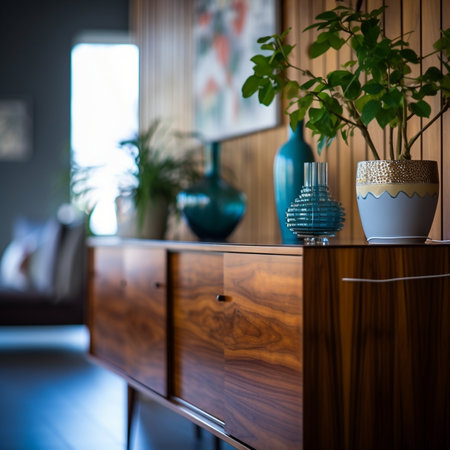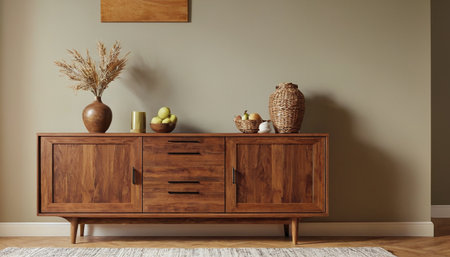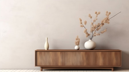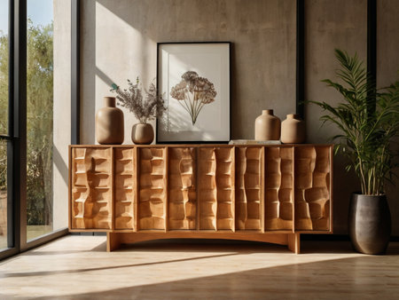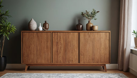 Contemporary wooden sideboard with minimal decor enhancing a modern home interior