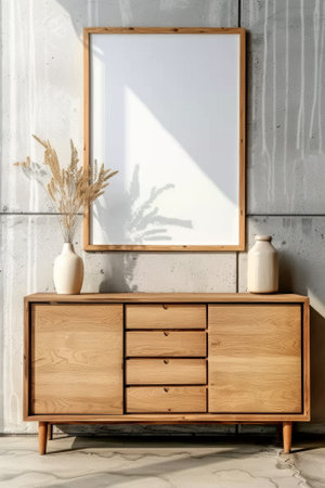 Mock up poster frame on the chest of drawers. 3d render