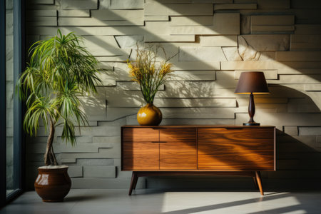 a wood cabinet in a well-organized living room interior decoration ai generated