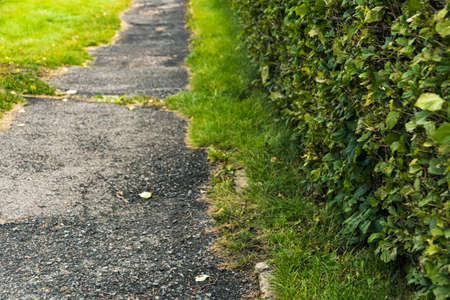 Path in the garden with a fence in the background, England.
