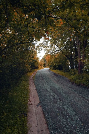 Autumn landscape with a road in the forest, selective focus.