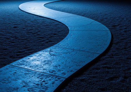 Wet, curving pathway at night