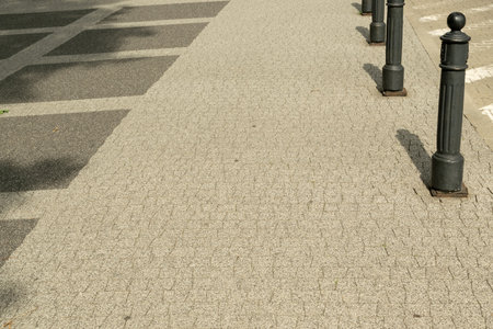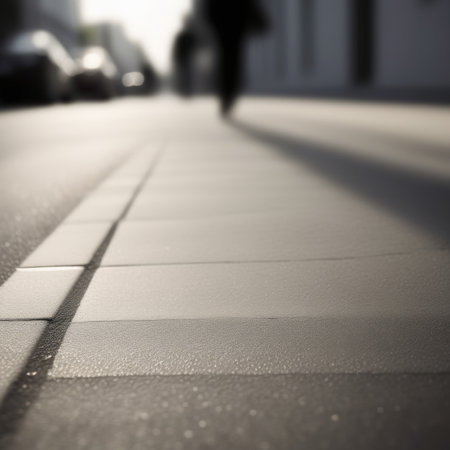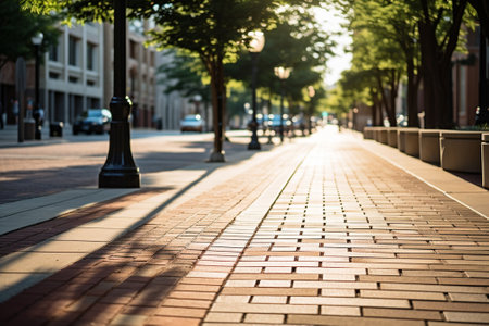 Urban Elegance: A modern street pavement adorned with paving stones creates an inviting perspective.