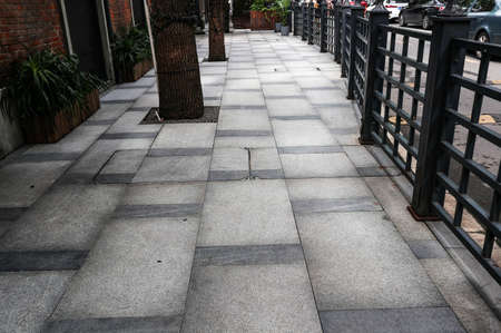 Modern paved path texture background, new slab sidewalk pattern, pathway wallpaper, marble brick path road, granite tiles walkway with copy space top view