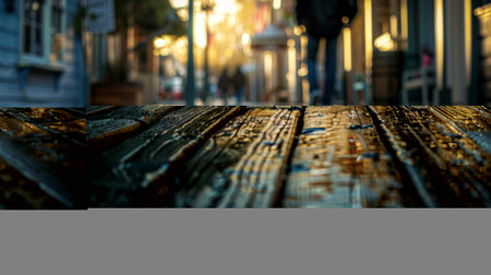 City street at golden hour with soft shadows, clean perspective, people in distance