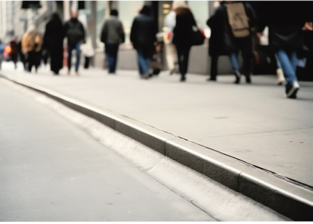 Unrecognizable people walking on New York City sidewalk with light and shadows. Copy space available.