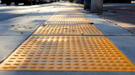 Textured sidewalk for the visually impaired, representing accessibility with space for National Day copy