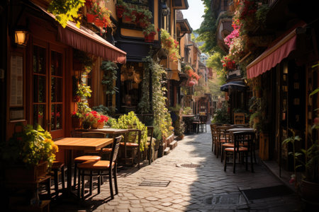 The Charming Fusion of Cafe Furniture and Lush Plants on the Street --ar 3:2