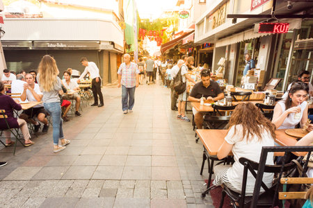 View of Kadikoy Popular streets where People love walking and visiting.Kadikoy is one of largest popular and cosmopolitan districts of Istanbul. TURKEY, ISTANBUL,29 JULY 2017