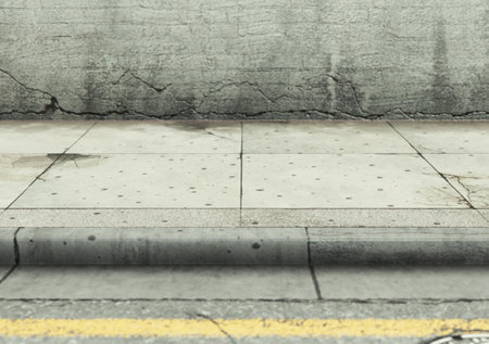 Sidewalk with concrete wall, urban background.