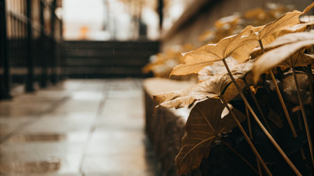 Autumn Leaves on Stone Steps Outdoors