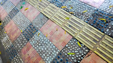 tactile paving for blind handicap on tiles pathway, walkway for blindness people.