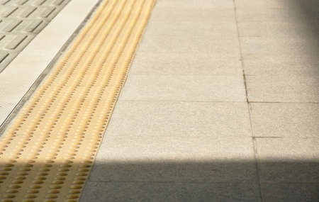 yellow security line in train station floor with shadow on sunlight