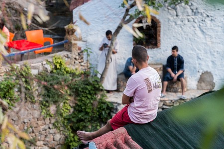 CHEFCHAOUEN, MOROCCO - SEP 10, 2016: Community laundry location view in Chefchaouen blue city, Morocco