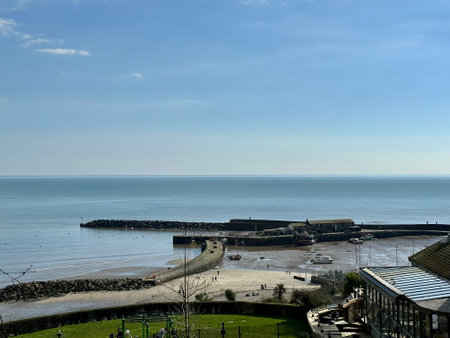 Panoramic photo of Lyme Regis in Dorset on a cloudy day
