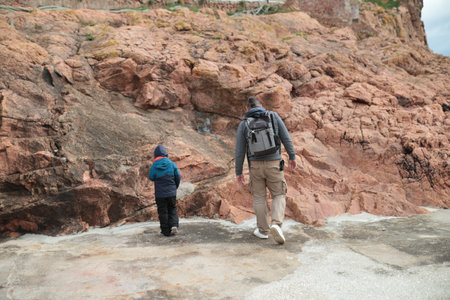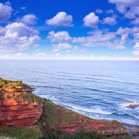 Red layered cliffs of Scotland's South-East coast at Scottish borders.