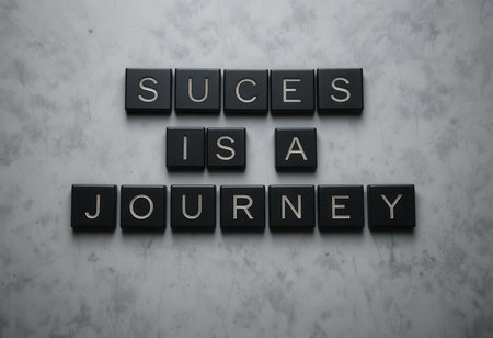 A creative flatlay featuring letter tiles arranged to spell an inspiring message about success being a journey. Perfect for motivational themes and personal growth.