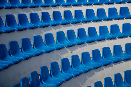 Blue armchairs on white for spectators in the amphitheater