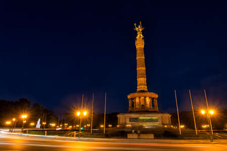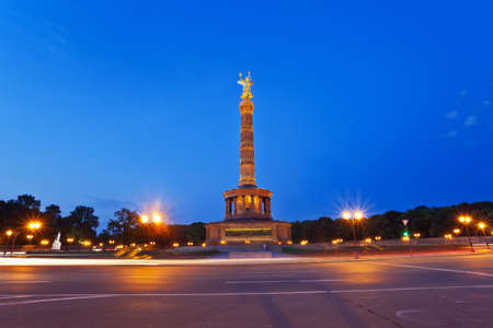 The famous Victory Column in the Tiergarten in Berlin, Germany, after sunset