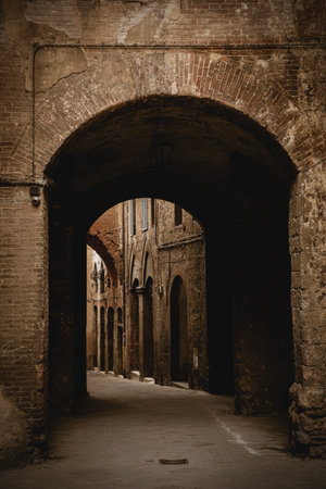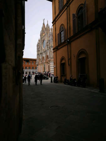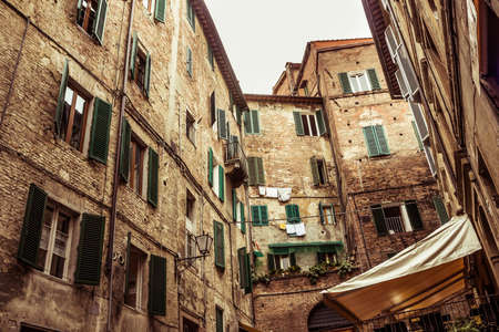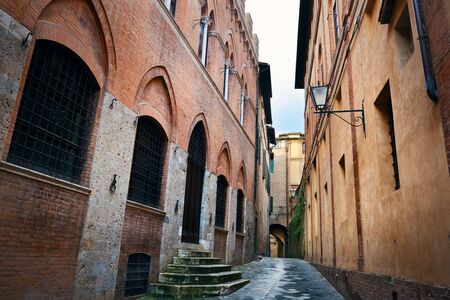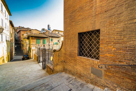 Siena, Tuscany, Italy, April, 2018: Old narrow street in the historic city center of Siena, Tuscany, Italy. High quality photo