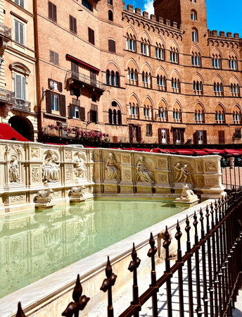 Siena, Italy - Gaia Fountain in the Piazza del Campo in the Sunny day