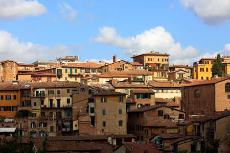 Beautiful landscape the roofs of houses of Europe Sienna old town in Italy under blue sky with clouds