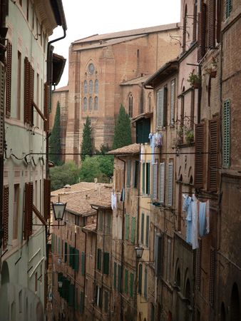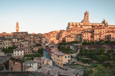 View on Siena city from from street Via del Sole. Tuscany. Italy