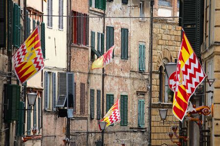 Siena, Italy. Old Town is divided into traditional districts (contrade) with distinct flags and colors. Valdimontone (Valley of the Ram).