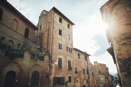 Buonconvento, Italy - April 22, 2018: Buonconvento, one of the most beautiful villages of Italy. Street in small historic medieval village in Tuscany